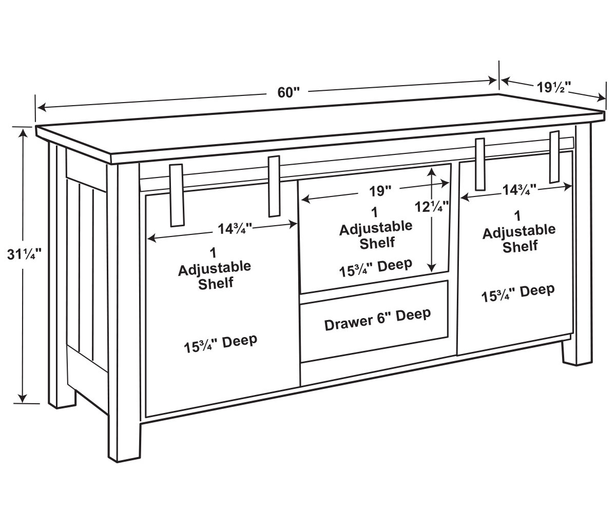 Dimensions: 60″W x 19½”D x 31¼”H